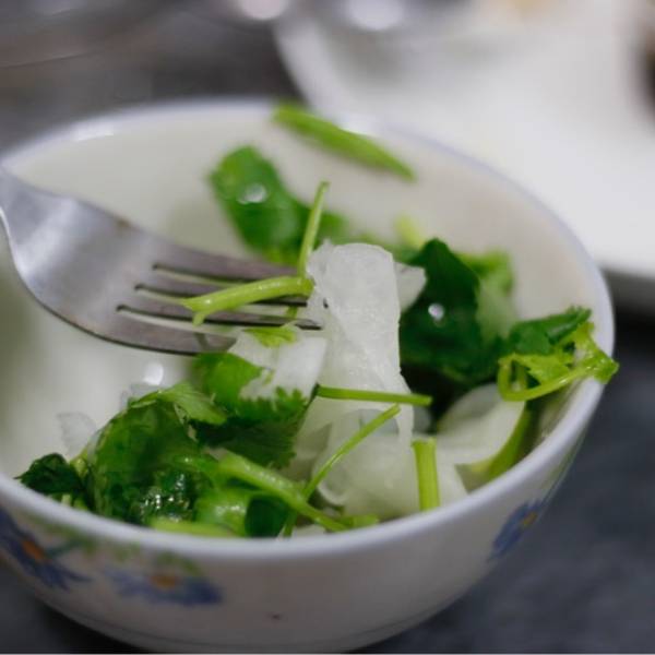 ...入口非常滑爽Q弹,鲜甜,而且很厚实哦,赞 白灼章鱼 嫩脆,蘸上特制酱料,芫荽,萝卜丝,口感更棒