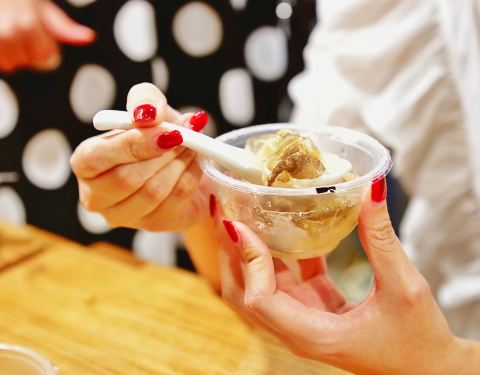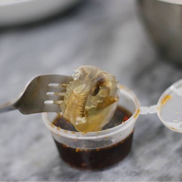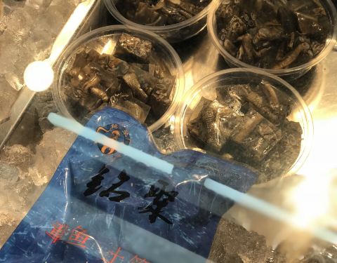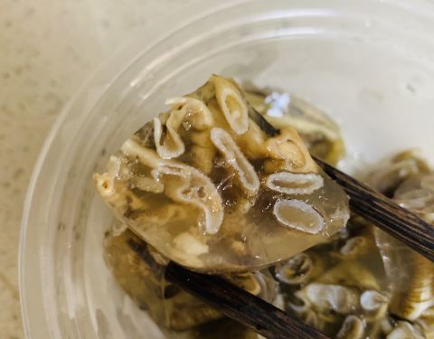 有点晶莹有点透明的「土笋冻」,让我感觉清洗得很干净,口感Q弹,胶原感十足,配上他们家自己配置的芥末酱汁,去腥有甘甜。