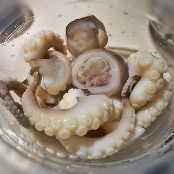 #章鱼冻# 大小适中的章鱼,白灼后冰镇,每一口都Q弹脆,最喜欢吃章鱼的头部,可以看到里面的膏,一口章鱼冻一口酒,神仙都要拍拍手。