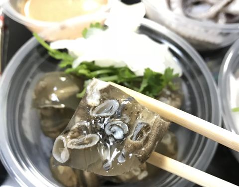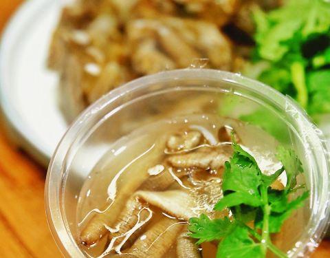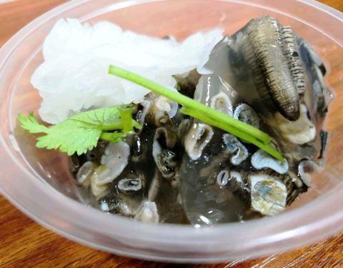 铭聚的章鱼土笋冻,连朋友从小吃土笋冻长大的土著都觉得它味道超正。去年世界杯被安利过来买,自此就欲罢不能啦!! 店面不大,但他们家做土笋冻的手艺据说有几十年了。土笋汤、小粒土笋冻、切块土笋冻、大块土笋冻,各种形状都有,每种土笋都很实在。 最喜欢吃大粒的土笋冻,刚入口是QQ的,一会儿在嘴巴就化成很鲜的汤汁。特制的麻酱土芥末最赞,先是一股冲鼻的辛辣直冲天灵盖,然后是阵阵清甜和鲜味。 他们家的土笋汤是夏天必买,冰凉凉hin去暑,配上自家的酸萝卜,嘻嘻嘻~ 章鱼口感鲜甜爽脆,买的时候特地跟老板说要带饭的,硬硬的章鱼卵越嚼越香,想想都在咽口水惹~忘不了的那种~ 还有血蛤,猪皮冻,鸭皮卷,海蜇皮,夏天买跟冰啤酒配,38度都不怕~