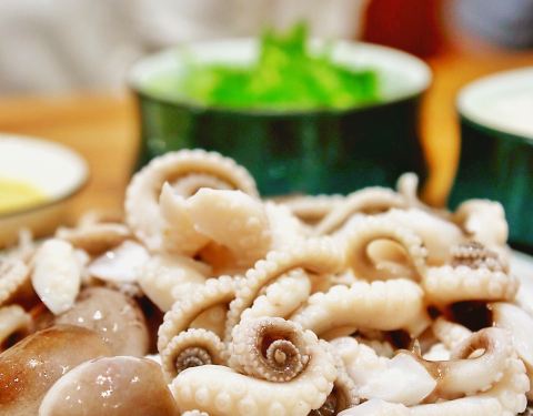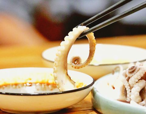 - ...入口非常滑爽Q弹,鲜甜,而且很厚实哦,赞 白灼章鱼 嫩脆,蘸上特制酱料,芫荽,萝卜丝,口感更棒