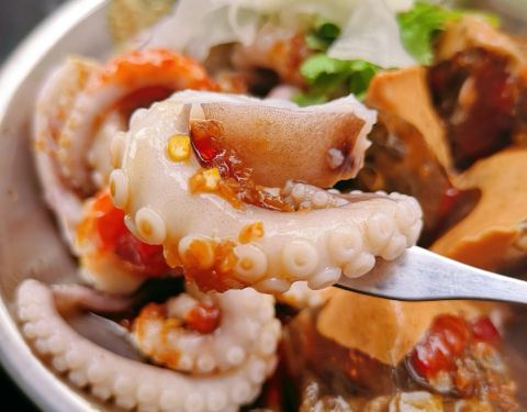 - 铭聚的章鱼土笋冻是我们家招待亲朋好友的必备菜品。位置就在离著名的松柏麻辣烫不远的路口处