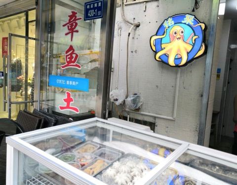 ...店,门口的冰柜有土笋冻章鱼等特色小吃,看到很多学生来买,看来这种接地气的小吃很受学生和顾客欢迎