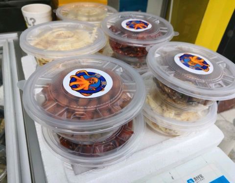 - 章鱼口感鲜甜爽脆,买的时候特地跟老板说要带饭的,硬硬的章鱼卵越嚼越香,想想都在咽口水惹