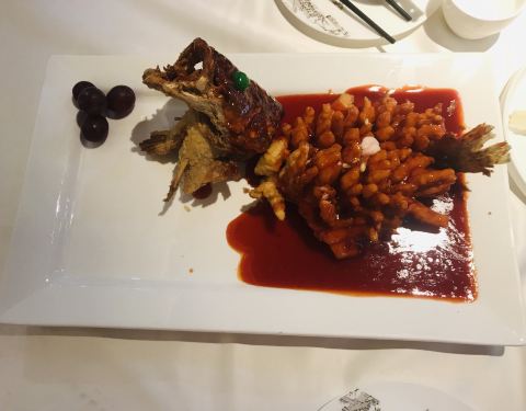 松鹤楼一直都是不能错过的一家苏帮菜馆 不同于老城区观前街的店面 这的装修风格更加高大上不少 典雅环境的同时搭配巨大的落地窗玻璃可以眺望金鸡湖的美景并且伴着音乐评弹声音 很有苏式韵味 松鼠桂鱼作为最招牌的菜 味道自然没有话说的好 番茄酱把甜甜的感觉弄得十分入味 小笼包的味道也还算不错 蟹粉和一包汤很带感