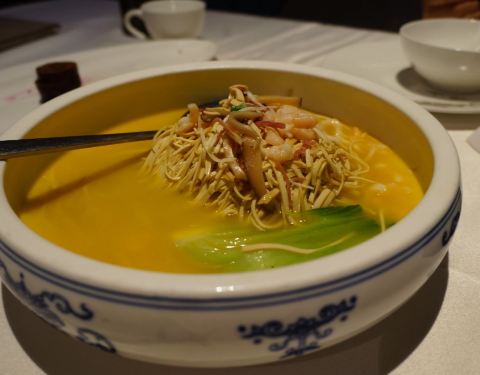 开在苏州中心的松鹤楼店相比较其他有些网红店生意不算太火,但怎么说也是百年老店,餐厅的整个设计和装修风格看得出还是很有品味的。去苏州吃东西,我特别喜欢来一碗面,松鹤楼的这碗面我吃的非常舒服,奥灶面。红红的汤底,清爽的面条,非常鲜美。好吃,不愧为老字号品牌店。