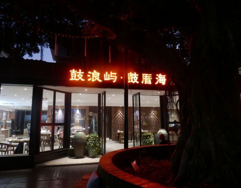 这家鼓厝海鲜煎蟹鼓浪屿里面的标地店了,生意很不错,人很多正宗的闽南口味,很多当地人的最爱。 离内厝澳码头入口很近,直走上坡不到5分钟路程左拐上行就可以看到一个标志性的一颗大榕树,很有意境,很有很多抱...这家鼓厝海鲜煎蟹鼓浪屿里面的标地店了,生意很不错,人很多正宗的闽南口味,很多当地人的最爱。 离内厝澳码头入口很近,直走上坡不到5分钟路程左拐上行就可以看到一个标志性的一颗大榕树,很有意境,很有很多抱枕和坐垫可供休息,很清净舒适的感觉。 饭店环境很敞亮,室外也可以就餐,很有感觉。 不得不说饭菜真的很实惠,很大份,团购了一个双人餐,3个人都吃的饱饱的,性价比可谓之高。 |酱烤东山海钓大管^是我吃过最好吃的大鱿鱼,甜甜口感,鲜香的鱿鱼,食材真的很新鲜,应该喜欢吃海鲜的都抗拒不了这种口味。 |铁板海鲜炒饭^真的很舍得放料,口口都有海鲜 |红烧昌鱼^不腥不腻,鱼肉很嫩 [服务]非常良好,很热情招待