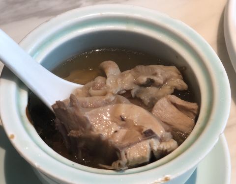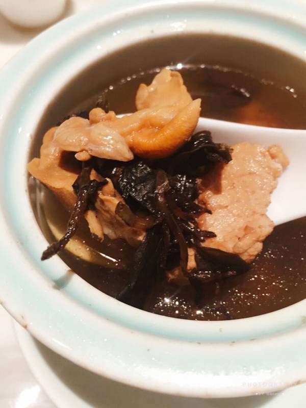 位置在JFC 的B馆 ~选择中午来用餐 和同事一起,环境很舒服 冷气足,特别适合宴请的高大上~ 桌上有热茶和饼干,热茶带着果香味挺好喝的~ 鲜椒戏桂鱼 奶白的汤头 酸酸辣辣,酸度很nice,不过里头的鱼肉竟然没有入味,感觉汤是汤,鱼是鱼。这个要是能改善一下就完美了~辅料是大片的腐竹 大白菜 不错吃。 古道豉油鸡 凉菜~肉嫩而味香,凉菜也可以出彩~ 金线莲炖螺头 很滋补哦,就是有点腥味。 南瓜塔甜点有点太绵软了~ 菜品的单价不便宜 适合多人聚会哈~