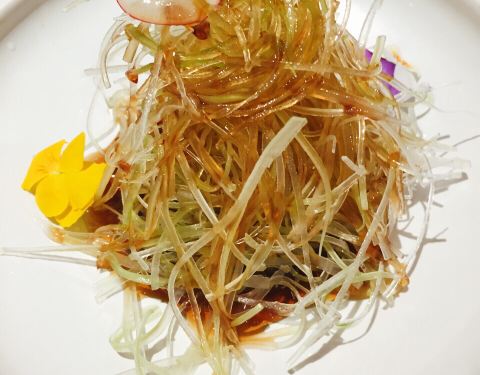 闲暇时光,想轻松小酌,将目光锁定位于建发JFC广场B栋的小南筵闽菜,不同于传统闽菜的简单快炒,小南筵是以闽菜风格为主的南派融合菜,摆盘更加精致用心。 敞亮的大厅,素净的原木纹路桌椅,一排贵气的红葡萄酒架,简洁、大方、明亮是我入眼对它家环境的评价。传过大堂,包厢清静风雅,服务热情亲和,坐在这里吃饭十分舒心~ 比泡椒凤爪还好吃的青柠无骨凤爪,经过酸爽清甜的青柠和辣椒的沐浴浸泡,辛辣味刚刚好,青柠味道酸爽香味清香。 冰镇西芹丝,一道很脆爽的小凉拌菜,作为前菜刮刮油,降降压,减减脂,哈哈,开胃又解腻。 黄椒丝瓜蒸龙胆,翠绿鲜嫩的丝瓜上面是切片龙胆鱼肉,鱼肉洁白鲜嫩,上方则是撒满了黄椒酱作为点缀和调味,加上大厨的精美摆盘一上桌我就对这道菜垂涎三尺。 葛仙米烩花胶,颜色墨绿,晶莹剔透,好似一粒粒珍珠。葛仙米,不是米,是一种珍贵的药食水生藻类,口感清脆、爽口,芳香悠长。将葛仙米与花胶同炖,花胶有美容养颜、养胃等功效,而葛仙米又可消除脂肪,一碗炖汤集美容养颜、健胃、减肥等功效于一身。 辣酒煮旺螺每一粒都个大饱满,肉质鲜嫩,辣椒和酒碰撞,使得旺螺在舌尖擦出了别样的火花,令人回味无穷! 闽南富贵鸡一揭开锅盖香气扑鼻,还能听见锅底传出沸腾的“吱吱”声。一整只鸡哦,口感特别嫩,鸡肉炖过的汤汁配上鲜美的鲍鱼,令人食指大动。 兰花蚌外形好看滋味鲜美,展开后的兰花蚌很像一朵兰花,口感Q弹新鲜,兰花蚌伴着底层的油淋断生的花生苗,味道鲜甜可口,口感爽脆。 沙茶煮肥牛菜色泽金黄,沙茶酱汁稠浓鲜美,辛辣甘香,浓浓的沙茶融入牛肉,热汤软嫩醇香滑嫩,金菇海带顺滑爽口,呼噜呼噜吃上一大口,辣、甜、咸、鲜融合的非常美妙。 水果很多人都爱,但是什么样的水果入菜可以让人更有食欲呢?以凤梨和虾球入菜,一点点的酸、一点点的浓郁、一点点的清爽。 黑蒜猪肚汤,打碎的黑蒜让汤色加深,香气浓郁,黑蒜的甘甜渗进猪肚和排骨中,猪肚爽滑有嚼劲,猪肉酥烂荤香。 闽南好彩头,无论从名字还是从彩色的摆样都充满了喜庆感,彩头其实是“菜头”的谐音,白萝卜滚成球状,晶莹剔透好看,口味带着几分清香。 地址:思明区环岛东路1703号建发JFC品尚中心B馆二楼