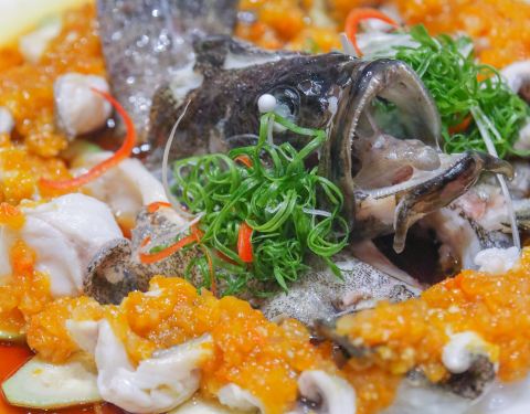 |古法豉油鸡^一道凉菜,有豉油的香味,用这种做法做出来的鸡肉又嫩又有嚼劲,口感很好。 |鲜椒戏桂花鱼^一整只鱼都在里面,不仅仅是鱼片,鱼头鱼尾都能吃到,熬出来的汤汁非常馥郁香醇,鱼肉的口感不仅嫩滑还有弹性,刺也非常好挑。 |金线莲炖螺头^螺头的肉丰富饱满,和金线莲炖在一起之后连螺肉也变得特别清甜。 |南瓜塔^南瓜压的很实,甜味来自南瓜本身,每一层都很用心,甜度适中,不爱吃甜点的人也会喜欢。