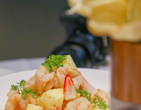 环境优美舒适太适合家庭聚餐了,还有包厢也适合商务宴请。 门口有泡茶位置假山流水潺潺。 服务态度超好的,很贴心,及时更换骨碟,上菜速度超快的。 凤梨虾球 女生都爱的味道酸酸甜甜的,有凤梨,草莓,哈密瓜,...