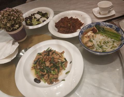 华邑彩丰楼,中餐厅,当地的菜都会加一点辣的老年人会不太适应,尽量选择普通粤菜。粉蒸肉和想的有点不一样,外面是粉,肉也粉的了,卤鸡米线没下午的过桥米线好吃,小炒肉因为我们要求不放辣,总感觉失去了一点...