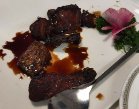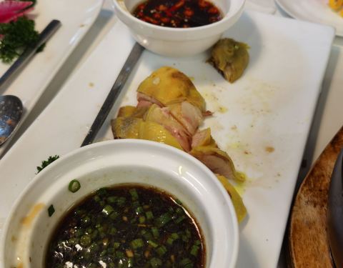 麦岛周边开了不少美食了,周末家庭聚会,带老人来换换口味。门头相对比较好找,外面的白栅栏比较显眼。进门是细长的通道,旁边种植的绿色植物,还有几张小桌子,可以喝茶估计也可以吃饭用,不过这个天坐外面有点热而且蚊虫肯定是避免不了的。进门是吧台,然后一张小桌子,往里面走有一个小厅,放了7--8张桌子,散客就在这里用餐,再就是单间了,但是单间不多。中午12点到的,基本满客了,入门也没有服务员搭理的,找到里面问了下预定的座位入座后扫描点餐。上菜稍微有点慢,而且上菜顺序比较乱,冷菜有的最后才上。菜品吧说实在的真心一般,不是太正宗,味道还是凑合。熏鱼甜口,南方口味。狮子头的味道还行,就是肉不是手切肉,没有口感。白斩鸡还不错,就是吃饱了后最后才上的!野生善于烧蒜这道菜的性价比真的很一般,首先鳝鱼非常的硬,不像是新鲜的,冷冻过的,不知道是烧制时间短还是什么原因,里面没有入味,全靠外面的汤汁,不像去上海吃的鳝段那么入味,口感也好,但是里面的大蒜都烂了,非常的好吃。整体来说,有型无质,建议老板还是好好再调整一下吧,毕竟现在走南闯北的多了,吃的多也有比较了。