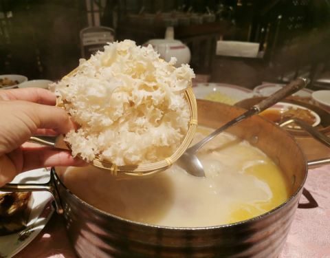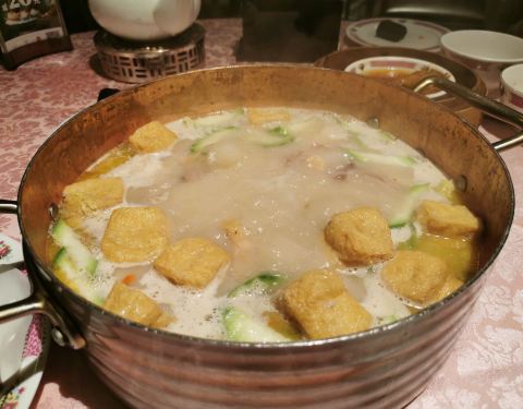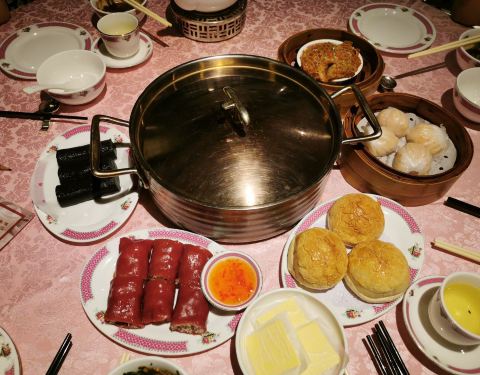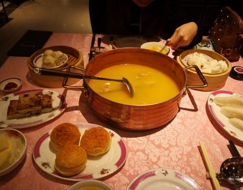 环境古朴典雅,具有浓浓的怀旧风格,装饰以红色调为主,非常喜气华丽,有种走进60年代港剧中的感觉。主打花胶鸡火锅,午餐时段还有港式点心,味道正宗。