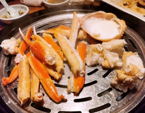 海鲜谷吃松叶蟹帝王蟹都很划算的地方 基本都是现蒸的,海鲜这个做法很新鲜呀! 小笼包是第一个上场的,蒸的比较久,不过很好吃! 虾姑一般,有点小只,椒盐也比较咸了点因为小,吃的比较麻烦。 不知道咋的点了三条秋刀鱼。。。太多了这个份量 松叶蟹打了鸡蛋进去,很鲜哈!99-斤棒棒哒!不过加工费30一斤是不是略贵呢?