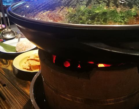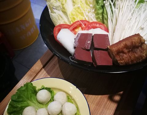 【位置】 不在应天大街主街上,要拐进恒山路,导航过去,位置准确,门口有划线收费地上停车场。 【环境】 门面比较大,不算显眼,不仔细看易错过。 二楼包间,一楼散座,桌子是用饮料箱搭起来的,特别,凳子内可以放包。 【服务】 服务员添茶,加汤,收桌子蛮及时的,服务还不错,点评上有团购,还蛮实惠的。 【食物】 羊肉锅是炭火的,火力很旺,炭好无烟,铸铁锅保温性好,很适合涮羊肉。 鲜切羊肉,看着就新鲜品质好,下锅后久煮不老,赞的,配菜的大白菜、干丝好吃,他家的山芋粉丝也很赞,爽滑无塑料感,又加了一份。 虾滑颜值好,煮岀来Q弹,好吃。 丸子有馅,多汁,吃的时候小心烫着。 【评价】 位于应天大街上餐厅、宵夜比较集中的一段,天渐入秋,开始吃羊肉进补,冬天不畏寒。