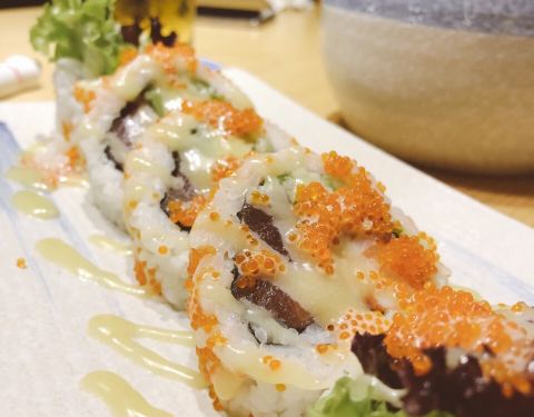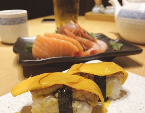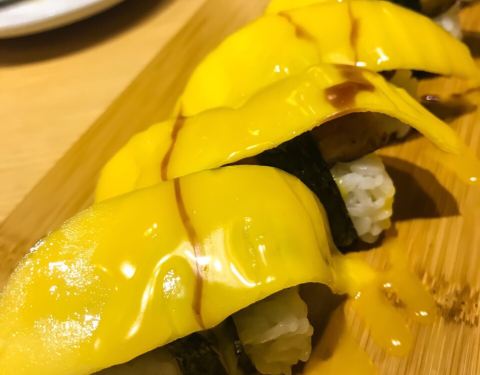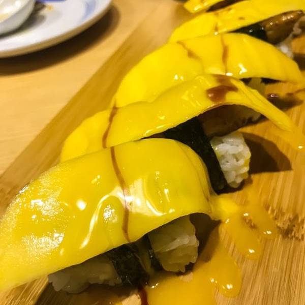 譬如口感极佳的活鲷鱼刺身,泉城日料店中不多见的鰤鱼刺身。烤鳗鱼和芒果鹅肝手握也都拥有不错的味道
