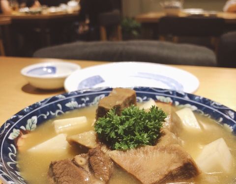 曾经最爱日料,如今已没了执念,拔草速度明显慢了下来。晚上在附近溜达,突然想到这里,过来吃个便饭吧。 【芥末螺片】28,3星半。应该都是半成品吧,芥末章鱼吃了太多想换换口味,味道是差不多的,适合下酒。 【三品刺身】59,3星半。按当天备货刺身种类有所不同,两人吃正合适,价格也实惠。金枪和甜虾都很新鲜,三文鱼纹路不错,但新鲜度一般肉质略散,脂肪和鱼肉有些分离了,口感倒是还可以。 【味噌牛舌】58,5星。太爱这个牛舌了,不愧是主打菜,为了这一道我可以再来一百次~~味噌和奶香味超浓郁,入口还略有回甘。牛舌软糯还略有嚼劲儿,部位也不错,大部分都是中部只有和少的舌根,搭配的芋头雪白绵滑,此刻我只想配碗白饭,连汤都一滴不剩。 【芒果鹅肝手握】25单个,4星。趁热吃还不错,鹅肝火候很棒,入口即化香气四溢。芒果酱味道浓郁,略微抢戏,而且稍有不慎就会突出鹅肝的腥味。还是更爱原味的火炙鹅肝。 【富山特色卷】58,3星半。横卷,单个个头比较大,料也丰富。三文鱼、金枪鱼、蟹柳,上面还撒了鱼籽和酸甜的沙拉酱。味道中规中矩吧,比较清爽但搭配酸甜的酱汁说不上惊艳,比较普通。 【朝日生啤】25一杯,会员88块无限畅饮。朝日的口碑无需多言,但浅尝辄止即可,喝嗨还是一帮人更有气氛哈。 【水果酸奶杯】老板送的饭后甜点,只有姑娘才有。冰凉的酸奶和淡奶油混合物,酸甜清爽,甜品总是会给人幸福感,颜值也不错。 从门面到大堂都是温暖的原木色装修,一入眼就很喜欢。服务细致周到,口味也基本能做到中偏上。总体挺满意的,价格不低但可以接受,两人随便吃点大约也要300块。没有任何活动,办会员1000起充,可以打九折。为了味噌牛舌也一定再来!