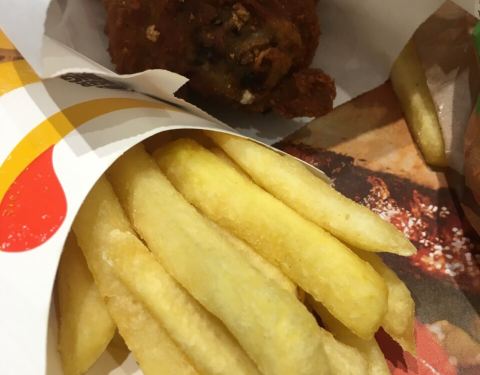 鸡腿很入味,口感很赞,而且我注册了汉堡王新会员,他们又额外送了我一份小薯条。总体真的很棒