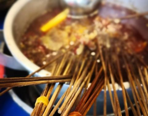 这是一篇应该写在天府四街店的点评,但是因为那家我已经写过了,所以就放这儿吧。 都是一家店,口味肯定也都差不多,也就是环境和服务还有火爆程度的差别吧。 如果你不想排队等太久,也不嫌天府四街太远,建议去四街的那家店吃串串。 5点去,肯定有位置,绝对不排队。 同一时间点,也肯定比其他店要人少一点。 2018年截止今天吃过两顿串串,两顿都是马路边边。 主要是他们家太火了,而身边的小伙伴都是喜欢凑热闹的人,所以不同的圈子选了同样的串串店。我恰好都参与了。 串串锅底有两款。一款比较香但是不辣的,另一款是更麻辣一点。 不辣的锅底适合不太吃辣椒的人,整体很温和,可以毫无负担的吃开心。 麻辣锅底其实我觉得也不辣,只是看起来辣椒花椒更多,牛油更重点,颜色更深点。 干碟,是他们家的重要灵魂伴侣。反正我是要吃5个干碟的啦。 干碟的辣椒分两种,都不会很辣。黄豆花生粉很香很重重要。根据喜好可以加香油、香菜、葱花、蒜泥、折耳根颗颗,调一碗油碟。 【串串】上一篇已经详细写过了,大概写一些吧。麻辣牛肉、香菜牛肉、猪皮、儿菜头、折耳根、嫩牛肉、鸭掌、掌中宝 。。。。。 都还不错。 【冒脑花】脑花还是比较入味,建议夹小块之后,拌一拌再吃更麻辣哟。重口味的小伙伴可以考虑,直接用这个碗里的调料当油碟,绝对比自己调的巴适! 【冒牛肉】 牛肉片很嫩很香辣入味,可惜量太少,一人一片就没了,垫底的是土豆片,略带脆口的那种。 【冒宽粉】 建议一次性至少点两份。份量不大,而大家都很爱它,所以根本不够吃啊,特别吸味,里面的豆芽也很脆嫩,宽粉的软硬度也很适宜,晶晶亮的透明状态哦。 【冒千层肚】 有种吃火锅千层肚的错觉,牛油味很浓,味道还行,比较香 【酥肉】一条一条的比较短,炸得有点太干了,并且肥了些,看起来都是半透明的。 【兔腰】是那种干拌的兔腰,纯粹的干辣椒干拌。虽然很嫩,但是因为不太喜欢兔腰本身,所以无感。 还有些什么我忘了。反正串串就是想吃什么吃什么,人多人少都不怕。都尝尝嘛。