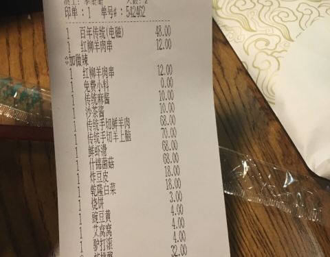 老牌子,不好好保持菜品的质量,就是自砸招牌。 开在没什么人气的商场里,红柳羊肉串上来不是热的,勉强算是温的,肥肉太多,也不香,有串只有五分之一是瘦肉,其余部分是肥肉,那索性菜名改成羊肥肉串更加名副其实。还有串羊肉上有串上有黑色的短毛发,服务员的解释是“羊毛”有哪只白羊有类似头发的黑色毛? 锅底很后面才上,菜嘛一个个上,怎么吃呀,点的是百年传统锅底,电磁炉的。羊肉选了传统手切鲜羊肉和传统手切羊上脑 ,羊肉膻不好吃。鲜虾滑腥味太重,松趴趴的,非常难吃!菌菇拼盘,炸豆皮,乾隆白菜是点的里面最好吃的了。点心也不行,豌豆黄太湿,其他艾窝窝,芸豆卷,驴打滚皮很厚,又硬,不好吃。核桃酪一般,还要2碗起点。