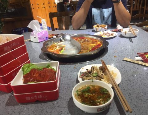 很好很给力,菜品很足,火锅汤底味道也特别好,这次要的是一个鸳鸯锅,服务员服务也很热情,吃空的盘盘碗碗会主动帮你收走,因为是塑料制品还会提醒不要离锅太近,店的环境还算不错,就是生意太好排队的人太多,...很好很给力,菜品很足,火锅汤底味道也特别好,这次要的是一个鸳鸯锅,服务员服务也很热情,吃空的盘盘碗碗会主动帮你收走,因为是塑料制品还会提醒不要离锅太近,店的环境还算不错,就是生意太好排队的人太多,总体来说,很愉快的一次就餐,下次吃自助还要去七掌柜自助火锅。