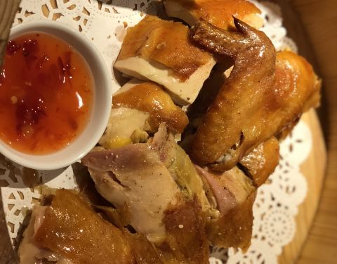 上海现在有好几家胡桃里了,这家位于金桥区域的胡桃里是开的比较早的,在商务楼下面,我也是因为工作原因才去这家店的,里面挺适合拍照的,单单拍照可能就要拍上15分钟,晚上有驻场歌手来唱歌,烤鸡是这家店的特...