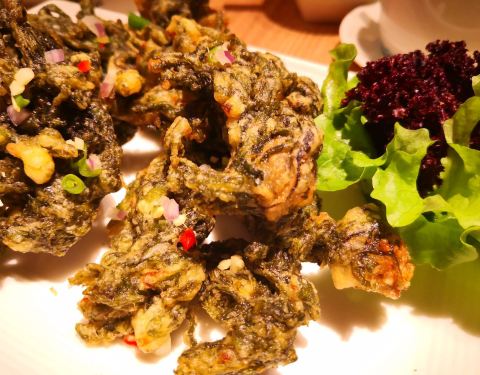 很小,晶莹剔透,是很好的开胃小吃。上菜时会简单介绍菜品的最佳吃法。 【酥炒芋头】 很让人惊喜的菜品