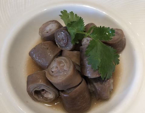 莆田是一家味道好价格亲民的米其林一星餐厅,主打福建和东南亚菜系,最爱扁肉汤,据说是鱼肉打浆做皮,包着细滑的猪肉糜,入口仿佛有脆脆的口感。蛏子系列是今天店家主推产品,蛏子个头不大,但是相当肥嫩;九转小肠还是推荐山东馆子吧!