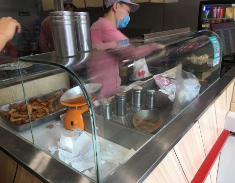...,一份大概有7-8块,他这个炸鸡是一直在炸的,我买的那份已经炸完放了会,口感和味道都略有些差异