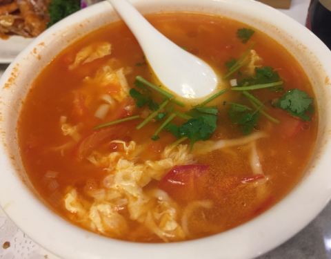 一碗米饭,一碗汤面,一份锅塌三鲜,不错! 「西红柿手擀面」米饭和汤的替代品! 「锅塌三鲜」和锅塌三样不同呀,虾仁,海参等