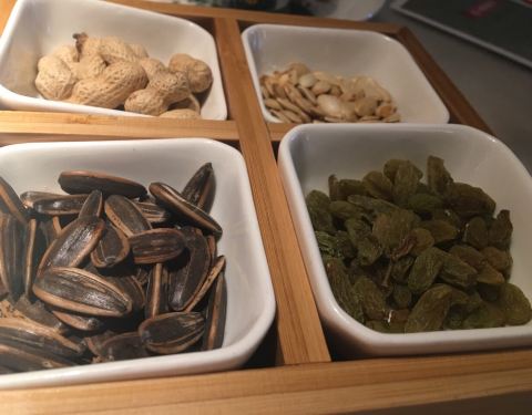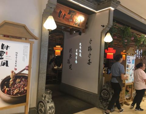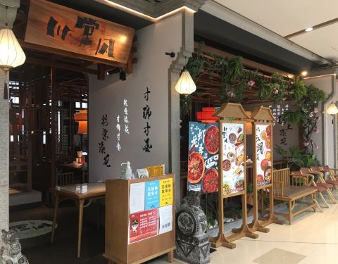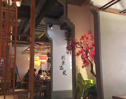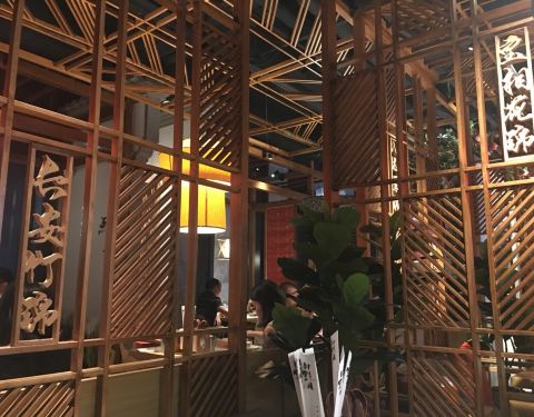 偶然发现的一家店,装修风格很古风很别致,人气似乎也不错,八点多了店内还有很多客人。餐前赠送了四小碟,香瓜子花生葡萄干等。 点菜的时候问服务员要了纸质的菜单,上菜速度还是挺快的,没隔多久就上来了。 【咸蛋黄锅巴】锅巴是那种用大米爆出来的米花做成的,外面包裹了一层咸蛋黄加一点点的葱花,又松脆又香,非常的好吃,值得推荐。 【砂锅老豆腐】很入味,豆腐味也很浓郁,咬上去口感挺结实的。里面还有一点菌菇点缀。 【兔腿】还是有点辣的,虽然比较小,肉不是很多,但是味道还可以,很香,也不老。 【家婆毛血旺】真的是超大一盆,内容比较丰富,有黄喉、鳝背、毛肚、午餐肉、笋、黄豆芽、鸭血等。味道还可以,比较偏辣的。 冰的金桔茶味道还可以,吃了辣的,喝点冰凉的饮料十分解辣。 两个人吃了¥168,是用支付宝扫桌上的二维码买单的,很方便。 这家店给人的整体印象不错,无论是环境菜品还是服务都还可以。下次可以试试其他的菜品味道如何。