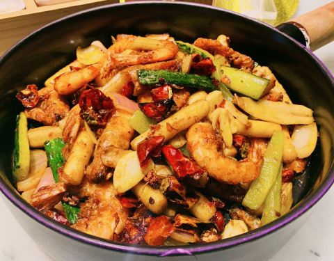 以前来这家店的时候每次都是人气爆满,如今受疫情影响生意看上去也不是很好,店内的人流量不多。 离家三四站路的距离,挺近的。下班顺路弯过去吃个晚饭。 平台团购的99套餐,性价比超好。包括了辣子鸡毛血旺土豆丝白菜和3碗米饭。辣子鸡真得是超大一个盘子,毛血旺的量也是杠杠的,味道还是一如既往,不过价格似乎比以前有略微的上浮。另外点的除了那个豆腐的汤汁有点偏咸外,其他像兔腿猪脚咸蛋黄锅巴都不错。