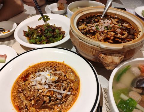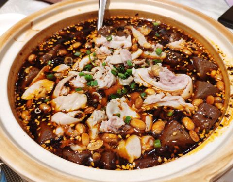 正好有朋友过来玩,就一起来尝尝。 菜品味道都还可以,只有肥肠血旺偏咸。 [服务]很好,服务也热情