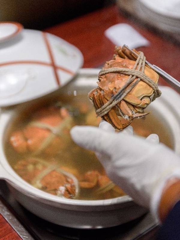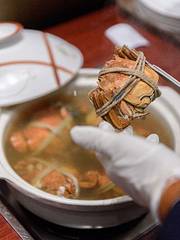 必点的大闸蟹!十年花雕酒的烹煮使得蟹肉更加厚重💓蟹黄饱满,下面还藏着细嫩的蟹肉,这一口下去不要太满足哟!
