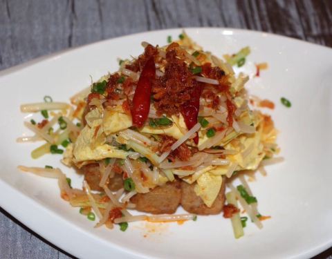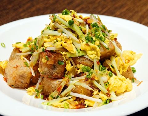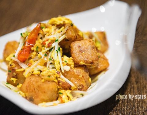 - 经典XᎾ酱炒萝卜糕锐意创意 薄如蝉翼的蛋皮叠成宝塔造型 金沙焗鲜鱿鱼Q弹弹牙富有嚼劲 煎烧贵妃...