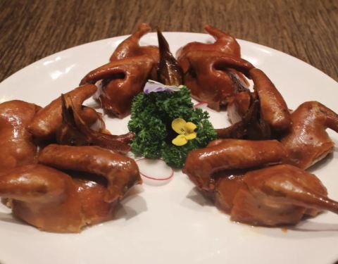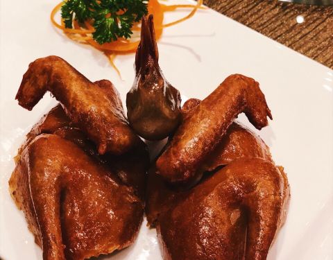 - 乐忻味之楼,粤菜馆,比较高端。玻璃乳鸽,表皮十分香脆,肉质香嫩可口