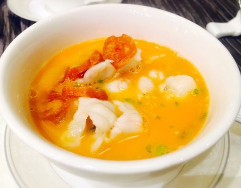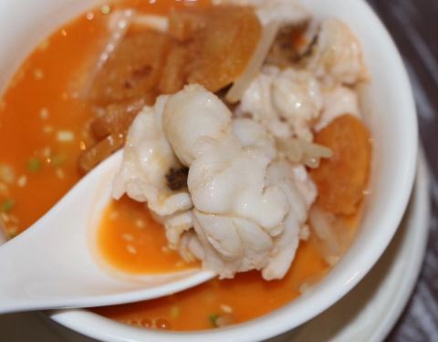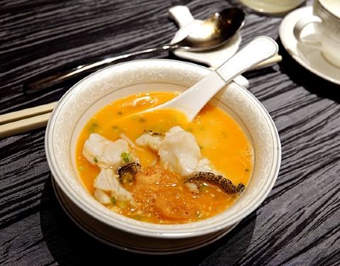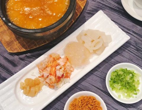 环境超级赞,金碧辉煌却不俗气。盘子,碗筷也很精致,唯一吐槽的是他们的桌子,拍菜真不好看。 前三名的菜都不错。乳鸽外脆里嫩,味道也不错。龙虾汤过石斑鱼色面不错,味道也是好的,配料是另外上的,根据自己...环境超级赞,金碧辉煌却不俗气。盘子,碗筷也很精致,唯一吐槽的是他们的桌子,拍菜真不好看。 前三名的菜都不错。乳鸽外脆里嫩,味道也不错。龙虾汤过石斑鱼色面不错,味道也是好的,配料是另外上的,根据自己的口味添加。萝卜糕外皮脆脆的,酱也好吃。鲍汁凤爪糯糯的,味道偏清淡。鲍鱼土鸡煲炖的也很酥,味道也偏清淡,无功无过。点了两道蔬菜,味道都挺好的。