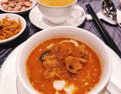 听过【乐忻皇朝】也听过【乐忻经典】却不知道原来还有家低调的【乐忻味之楼】应该是同一个老板的吧。南洋中菜,环境有点中式 又有点古韵 比想象中惊艳太多。确认过眼神是喜欢的南洋风味~龙虾汤过桥石斑鱼和玻璃乳鸽,比外面炸得都更透,脆皮嚼起来够带感,脆嫩与响脆,太治愈~