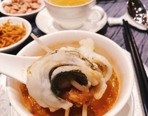 环境超级赞,金碧辉煌却不俗气。盘子,碗筷也很精致,唯一吐槽的是他们的桌子,拍菜真不好看。 前三名的菜都不错。乳鸽外脆里嫩,味道也不错。龙虾汤过石斑鱼色面不错,味道也是好的,配料是另外上的,根据自己...