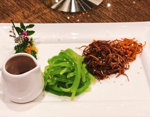 萝卜糕外皮脆脆的,酱也好吃。环境超级赞,金碧辉煌却不俗气。 前三名的菜都不错