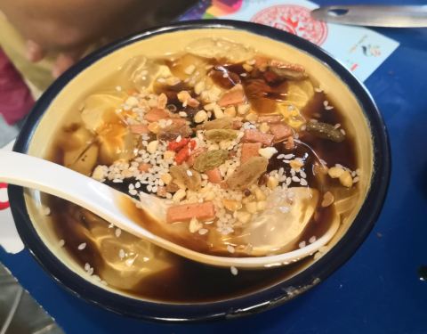 ...海的程度小吃店,火锅还是不错的,还点了冒花甲和冰粉,味道一般,不太推荐,还是串串好吃,值得一试