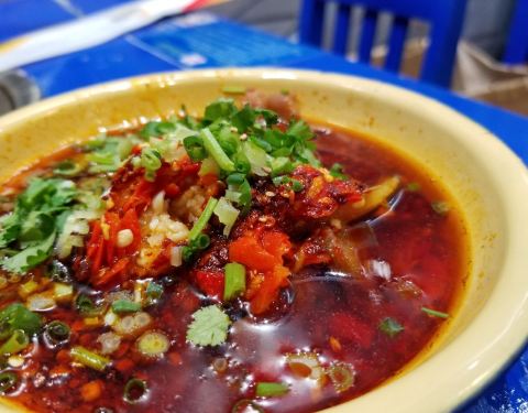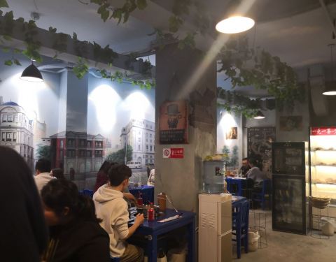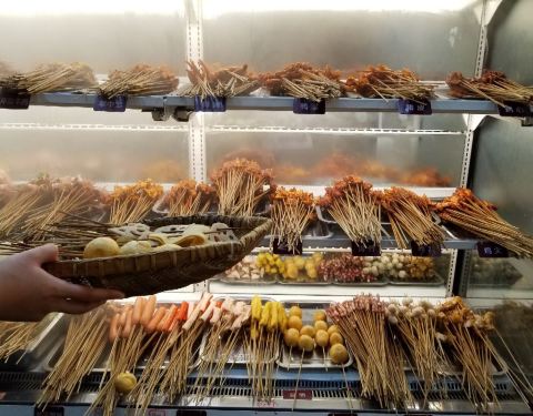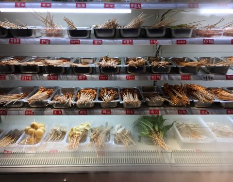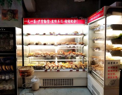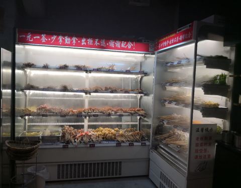 一听就是特别接地气的小店,说是串串,也有点像自助麻辣烫,但是是自己烫的,东西都是自己拿的,然后...