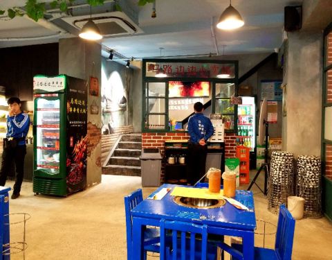 - 马路边边串串香火锅,这里的吃法是先点锅底,然后再自助拿串串,有个竹簸箕可以放在里面,在火锅锅底...