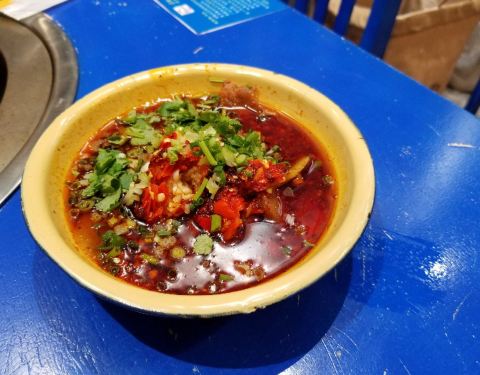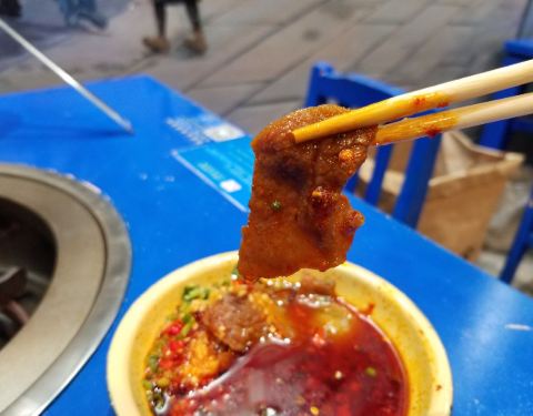 魔都+成都,Mix&Match 2018-12-12 感谢大众点评的霸王餐券,好像是自己拼图拼到的吧,代金券99米 |路边嫩牛肉^26米,在冒菜熟食里!艾小米看了半天,感觉熟食,联想到上海人说的熟食,应该可以吧!结果被告知,这个是现...魔都+成都,Mix&Match 2018-12-12 感谢大众点评的霸王餐券,好像是自己拼图拼到的吧,代金券99米 |路边嫩牛肉^26米,在冒菜熟食里!艾小米看了半天,感觉熟食,联想到上海人说的熟食,应该可以吧!结果被告知,这个是现做的!现做的熟食?回答,是冒菜!好吧,越来越听不懂的艾小米!上桌,惊掉了艾小米的下巴,一碗辣椒酱……费力弄干净,试了试牛肉片,很嫩,不过有种嫩肉粉的感觉,然后就没有然后了,因为除了辣还是辣,没有其他米道了! 临走顺手讨了一瓶神器带回家玩,第一次在火锅店看到这么贴心的小宝贝 嘉欣姐姐的旧照,是贴在了洗手间的门后,嗯,嘉欣姐姐可是艾小米的女神昂又美又有手段