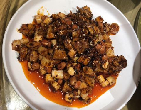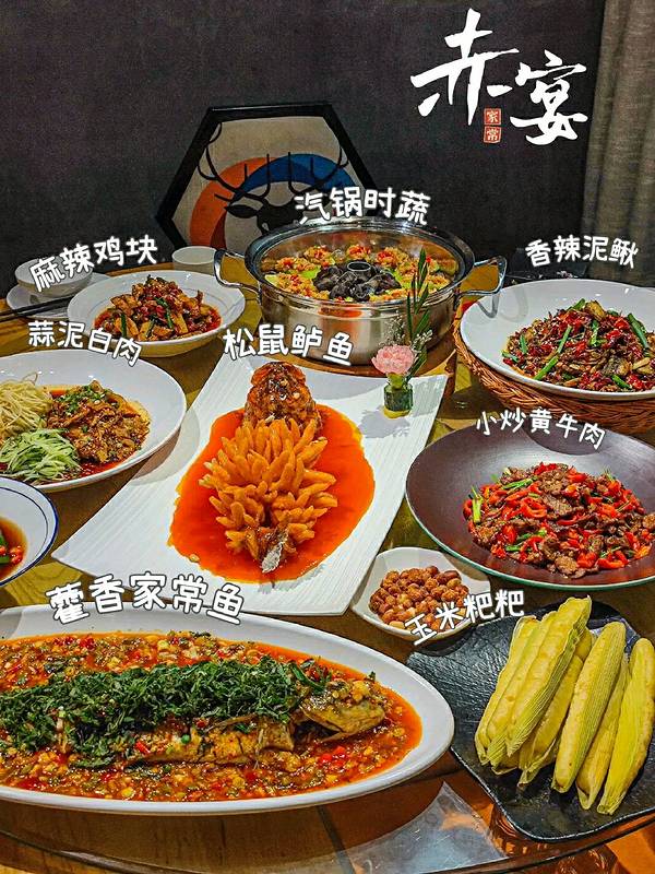 如果朋友来成都玩的话,蕞推荐这家了! 时间磨砺的才经得起考验! 味觉与视觉上,都要感受到绘画饮食的艺术~又是深入人心的家常味~ 每一份菜的口味的考究,摆盘的用心!团建聚餐都很可!氛围非常棒~ ————————推荐指南♡———————— 松鼠鲈鱼 我很喜爱的一道菜!端上来的时候,摆盘刀功都很精美~酱汁浓稠淋上,色泽油亮挂酱均匀,酸甜开胃!外部酥脆,炸的非常到位,内里鲜嫩~ 小炒黄牛肉 听说是他们家招牌菜,很多客人都很喜欢点! 怎么形容它的好吃呢?就是俩字!下饭! 甜椒是真的香!肉香四溢! 也不是湖南小炒肉那种辣到不行的,比较清香~ 香辣泥鳅 采用大火爆炒后再干煸!水份也收的刚好!上面铺满了一层花椒!口感爽脆香辣又麻苏苏!泥鳅肉质细嫩~ 麻辣鸡块 他们家凉拌辣油都特别香!拌出来的鸡块被红油浸透,裹满了香葱芝麻! 玉米粑粑 小时候玉米粑粑的味道! 口感松软蓬松!散发出来的淡淡甜刚刚好! 汽锅时蔬 用汽锅蒸出来的菜,保留了原汁原味! 下面铺的粉丝也特别下饭! 每一盘菜份量是真的多!特别是那盘蒜泥白肉,真的是肉堆肉!店家十分实诚~没有像别的店那样放些黄瓜丝垫着糊弄食客! 打包的时候,店里给了质量特别好的四周年的环保口袋~ 💛店名:赤宴(玉林店) 💛地址:兴蓉东巷12、14号