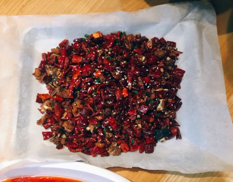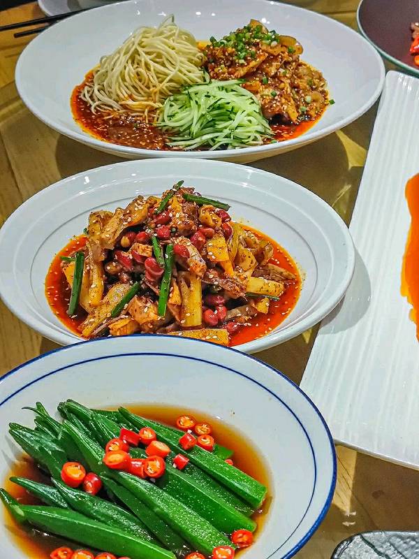 麻辣鸡块红油拌的,挺香辣的,小炒黄牛肉,牛肉入味,辣椒很香。餐厅很大,整体装修不错