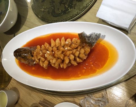 虽是家附近的店,却是请亲友吃饭搜到的。特意提前去看了一下环境,满意;菜品也以家常菜为主。我们6个人,看到刚好有6人餐,就懒得点菜了,选了6人餐。菜品不少,分量也不小,喜欢蒜泥白肉、纸锅腰花、糖醋松鼠鱼...