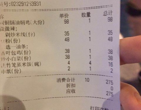 朋友说这家店超火,之前去还没排到,这次两个人一起某app上先取号,实际叫号非常快,估计都是取了人没到的,到那门口也没见到排长龙的状况。 店内环境有点热,尽管四周还开着电扇,但总觉得闷闷的。 手机扫码点单,结算,服务员期间会时不时过来问下菜品口味,是否要换盘。 【土司铜锅油焖鸡】铜锅是每桌必点之菜,有鸡有鱼有蛙不同的选择。我们店了鸡的,里面鸡肉非常嫩,土豆粉粉的,非常入味,不知道锅底下面是否有加热,反正吃饭最后还是热的。 【炒小瓜】想着要问服务员是什么瓜的,不过最后忘问了,吃着微带甜,不是爽口脆的那种,有点炒夜开花的感觉。 【薄荷罗非鱼】这个其实就是油炸罗非鱼吧。鱼被炸得非常透,但同时也感觉有点硬。 【小锅米线】和自己想象的有点不一样。也是几乎每桌必点,个人感觉一般。 【米酒】感觉在喝酒酿,甜甜的,也不觉得有酒精度数。