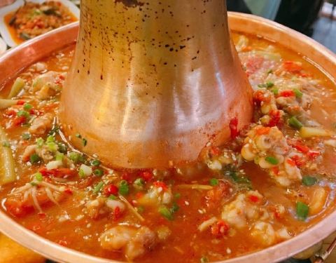 排队火爆,等了很久才吃上!非常好吃,值得!推荐土司铜锅油焖鸡,够辣,分量超足,鸡块几乎没有骨头,每块都是足足的鸡肉,肉质鲜嫩。他家的菜全都香咸入味好下饭!